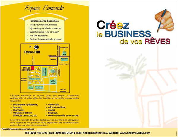 La NHDC Ltd a érigé trois centres commerciaux notamment à Camp Levieux (Espace Concorde), La Tour Koenig et La Caverne, dans le but d’offrir un service supplémentaire aux résidents des complexes avoisinants. Une variété de produits et de services sont disponibles (boulangerie, magasins, fleuriste, salon de coiffure, quincaillerie, snacks, salle de lecture, etc.).